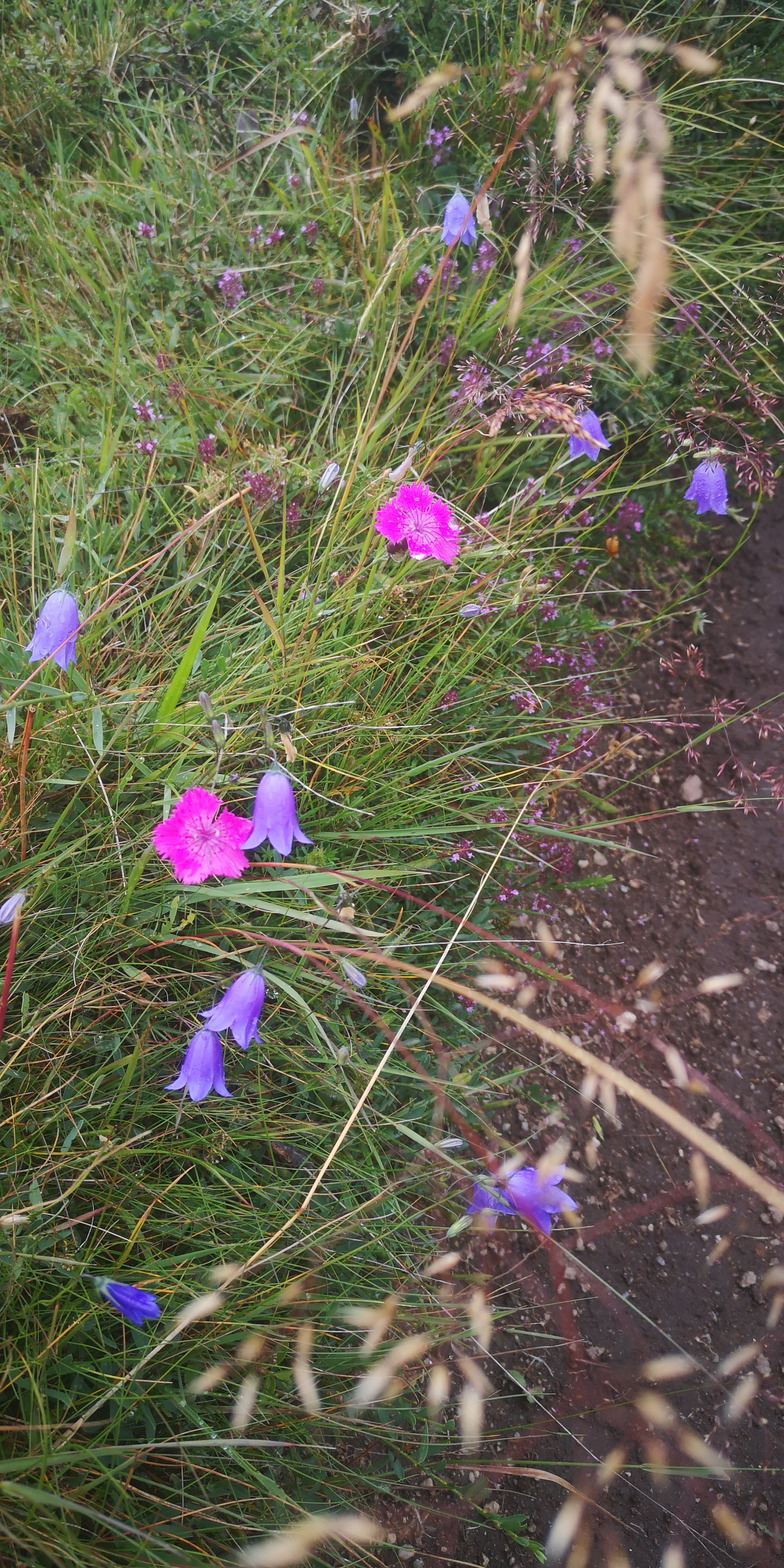 Ici la biodiversité s’exprime au travers des fleurs qui bordent les chemins. Des Gentianes, orchidées et pensées sauvages, framboisiers, les myrtiliers etc… offrent un balisage coloré à nos pas…