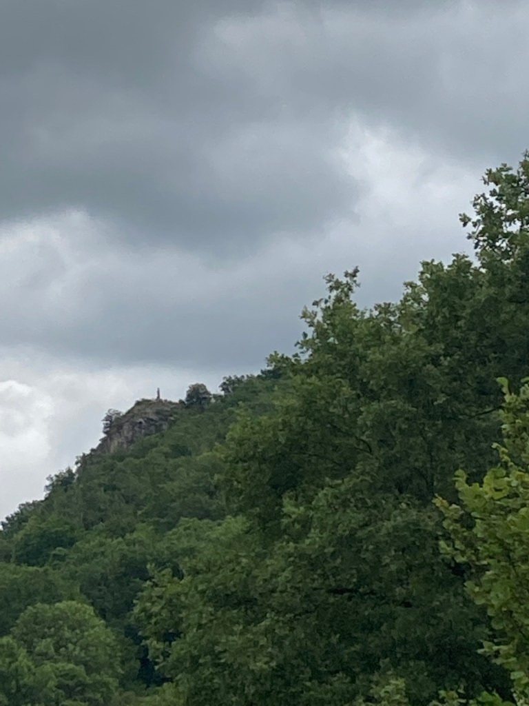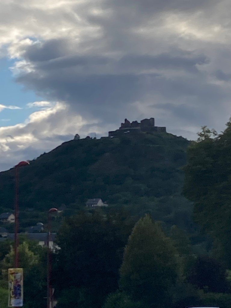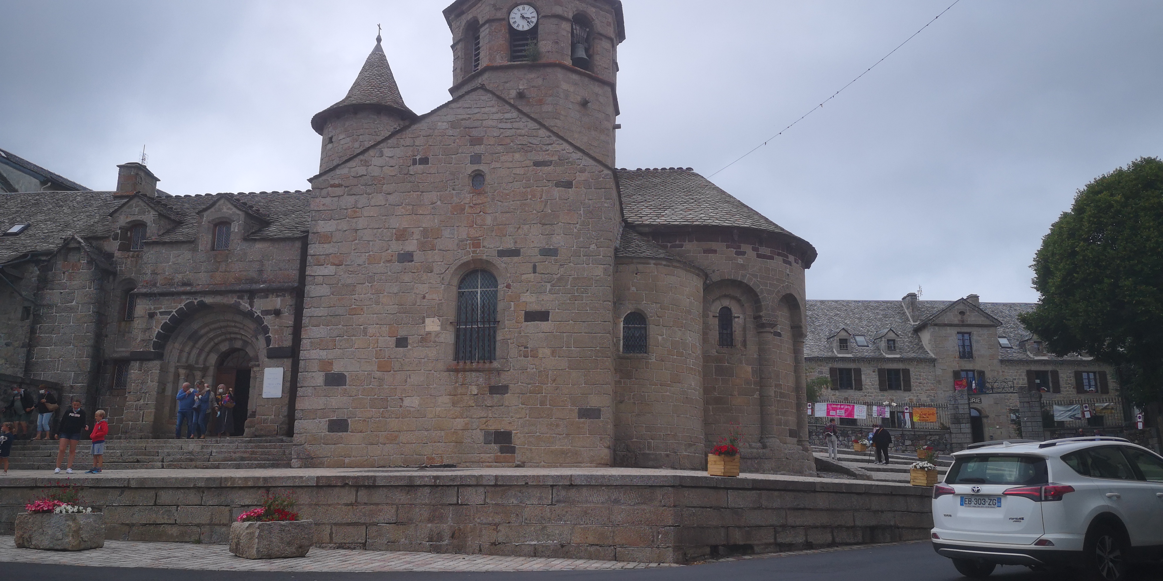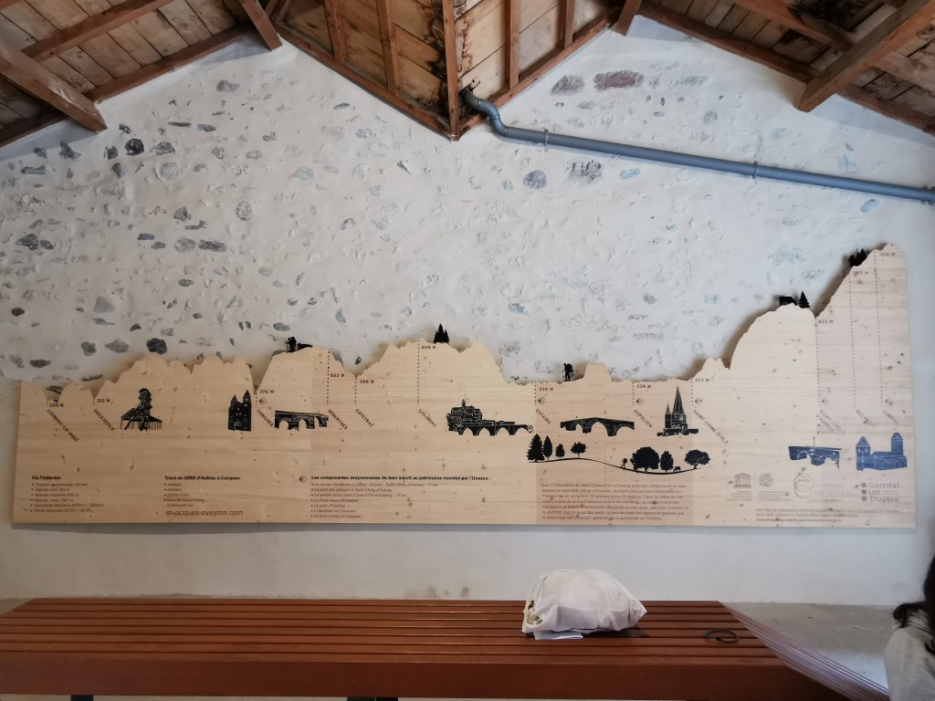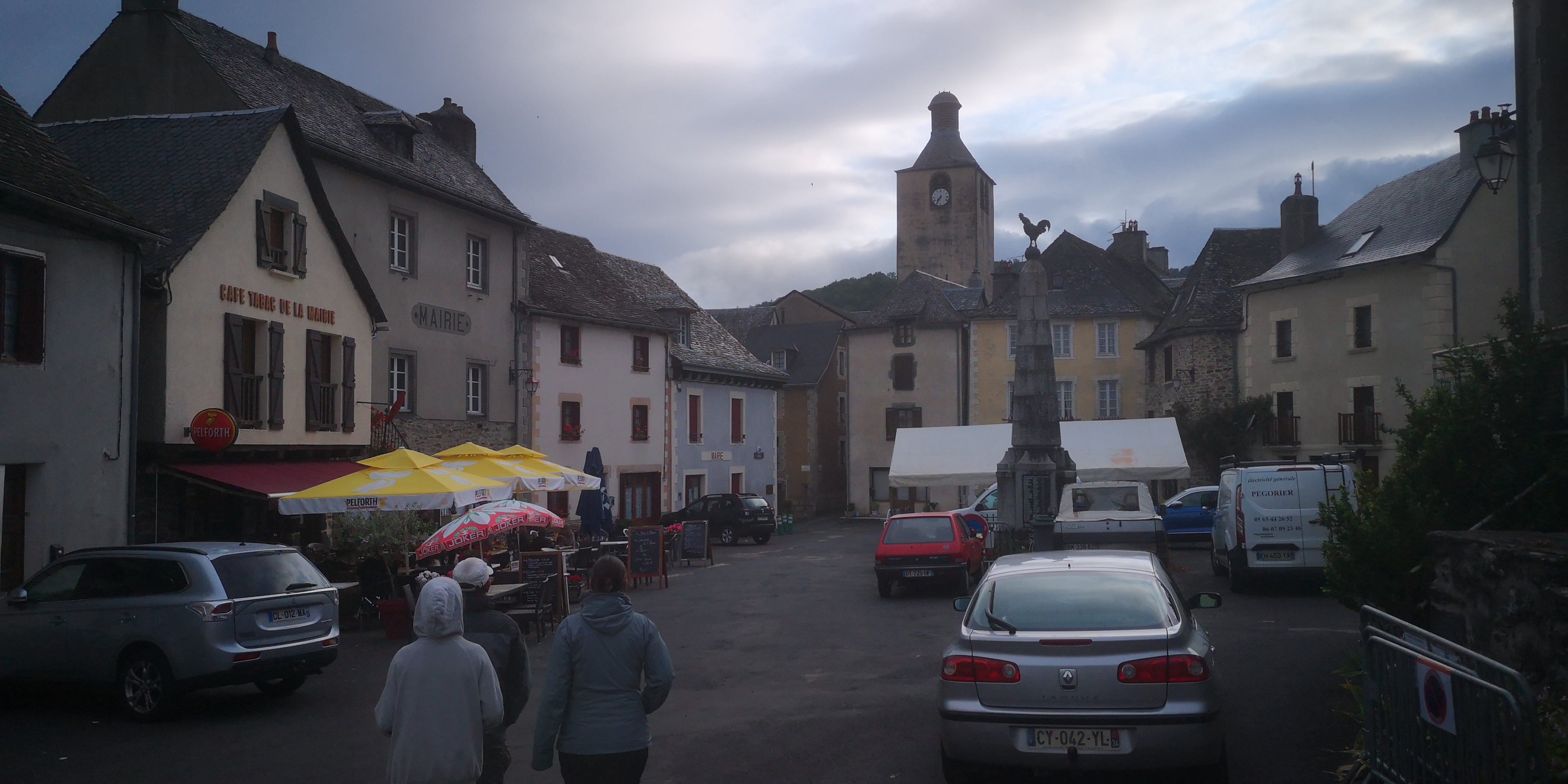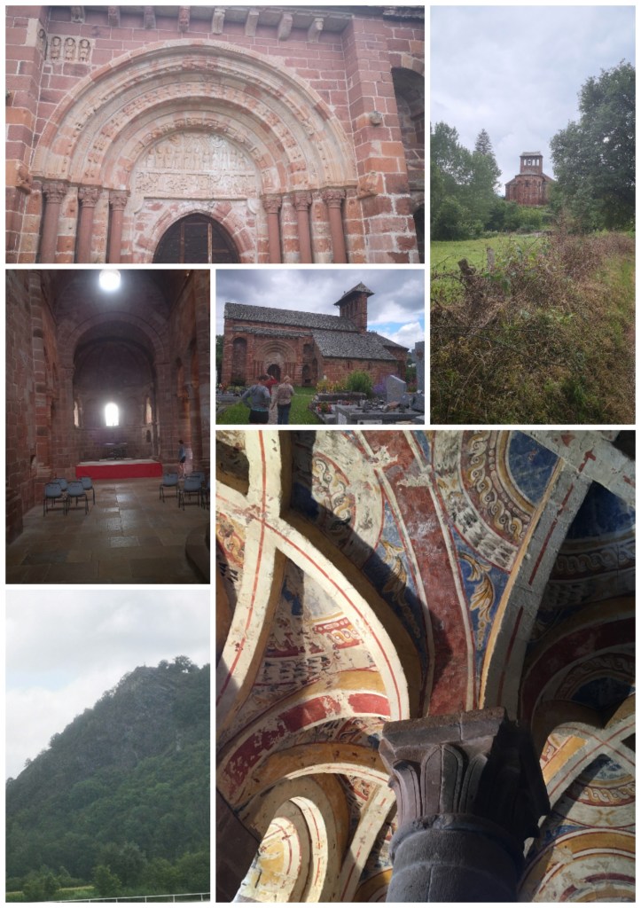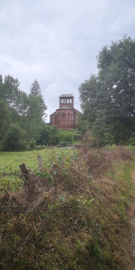 Je dirais qu’hier nous étions plus en mode balade que pèlerinage. Sur les conseils des locaux, nous avons remplacé la montée au promontoire, qui surplombe Espalion, abritant une statue de la vierge, par la visite d’une chapelle perse, bien conservée, afin de soulager le genoux toujours douloureux de Marjorie et pour nous éviter une descente abrupte, rendue dangereuse par la pluie…