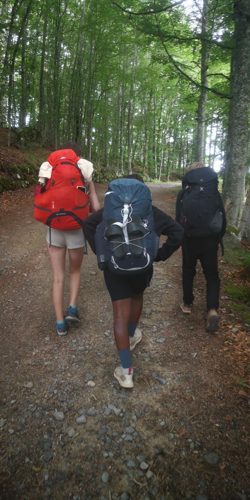 Les enfants ont passé la journée devant, nous larguant souvent à plus de 500 m, en mode plus vite fait plus vite fini…à chacun sa motivation, le principal est d’avancer. Pour nous les vieux, les kms qui se succèdent commencent à se faire sentir: petites douleurs de-ci de-là, ampoules, rougeurs… Etc… Mais rien de grave..