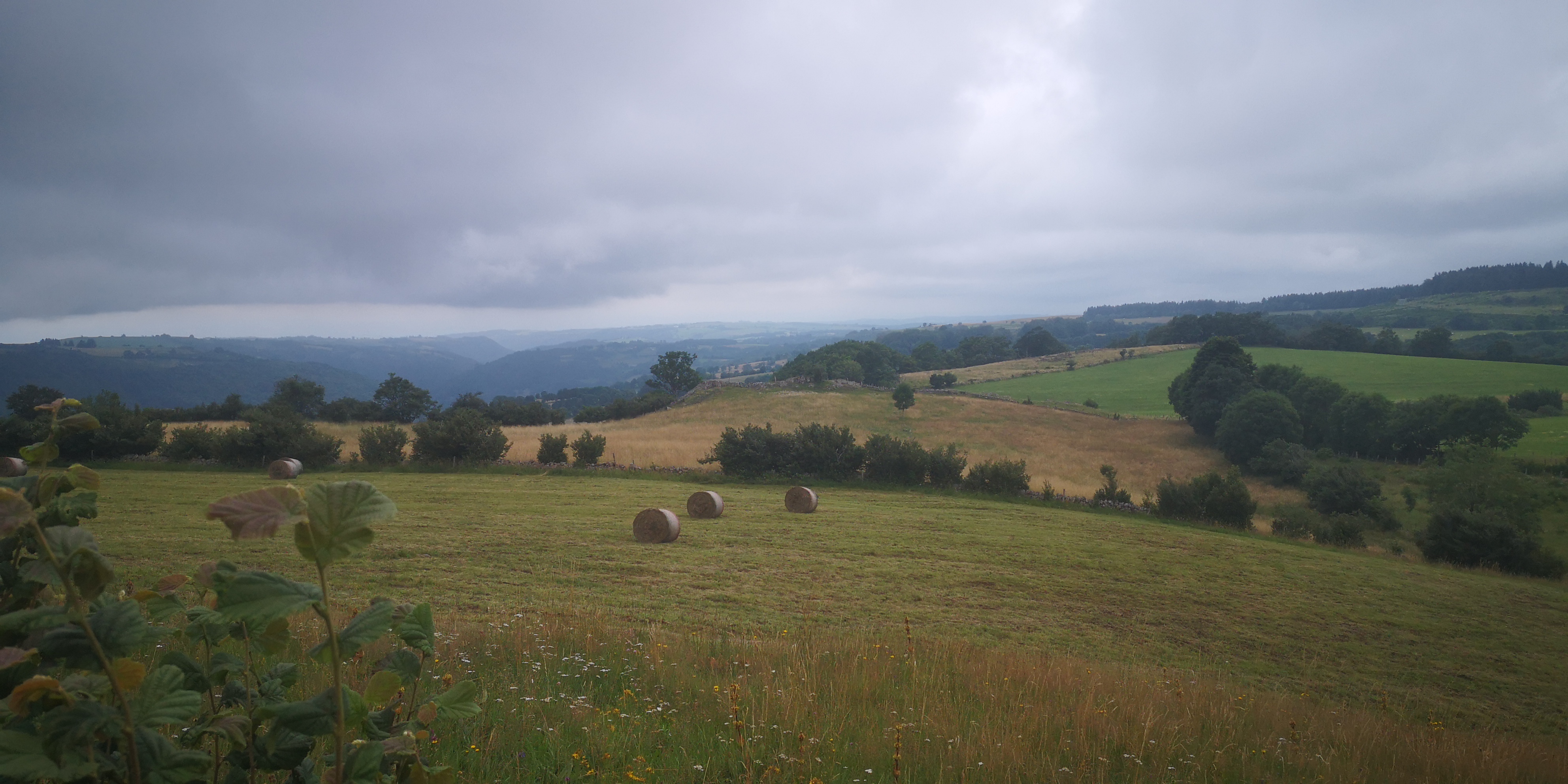 Le paysage est magnifique, nous sommes les invités des vaches Aubrac qui pâturent tranquillement, amusées certainement de voir ces bipèdes se donner tant de mal…