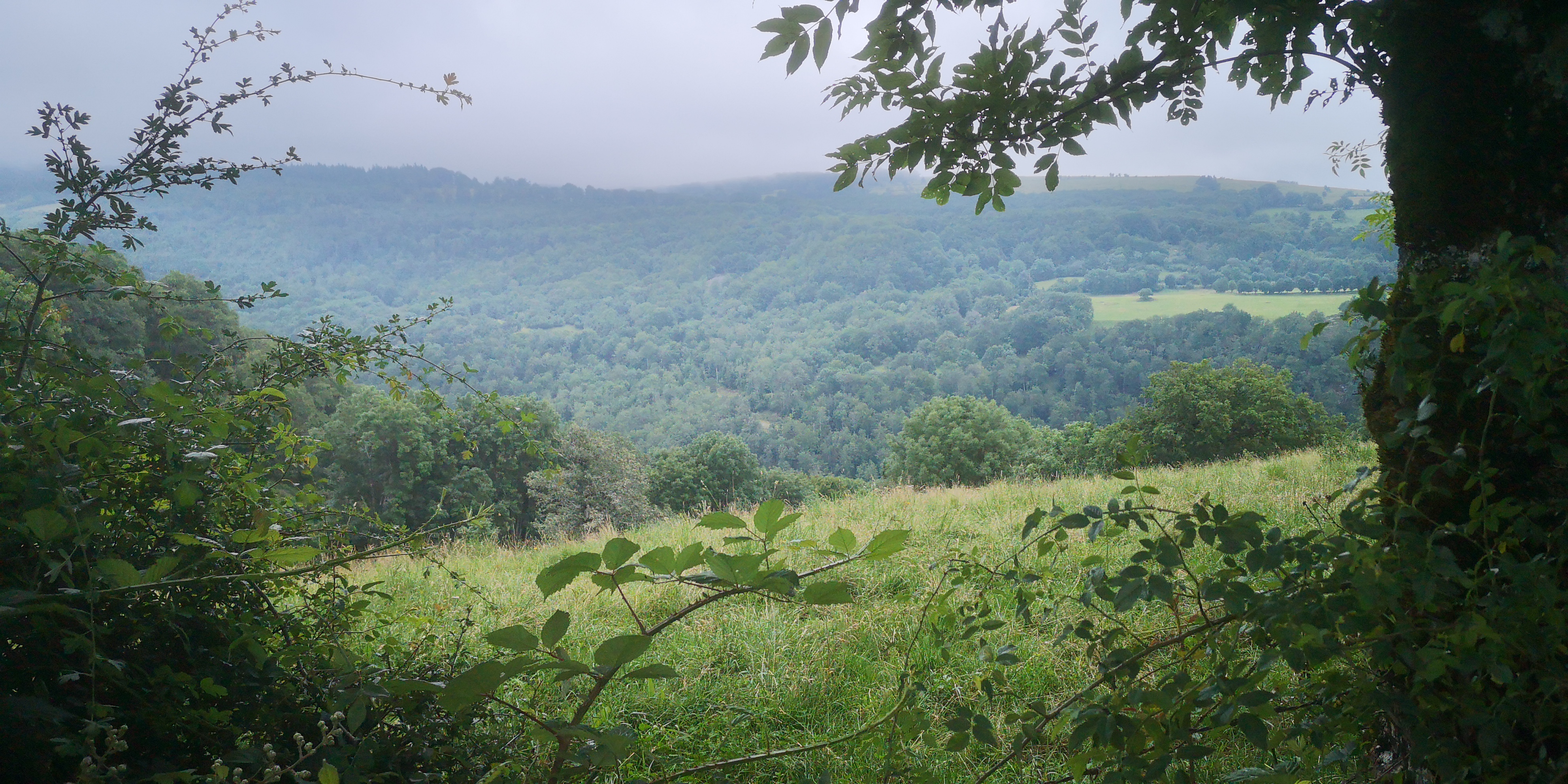 Aux grands espaces succède un petit sentier en sous-bois que l’on emprunte en file indienne… Au détour d’un virage de magnifiques vues sur la vallée se laissent entrevoir…