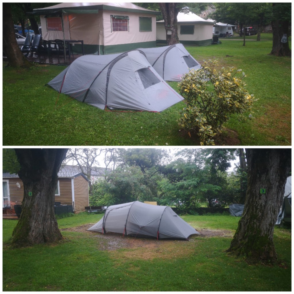Nous pressons le pas ensuite pour rejoindre les enfants et Marjorie que nous retrouvons au final après avoir essuyé une petite pluie en conclusion du trajet. Arrivés au camping, point final de ce riche cheminement vécu, nous nous satisfaisons de voir le camp monté comme des chefs par nos ados sous la houlette de Marjo, nous les félicitons donc… Ce qui nous change de l’habitude !!