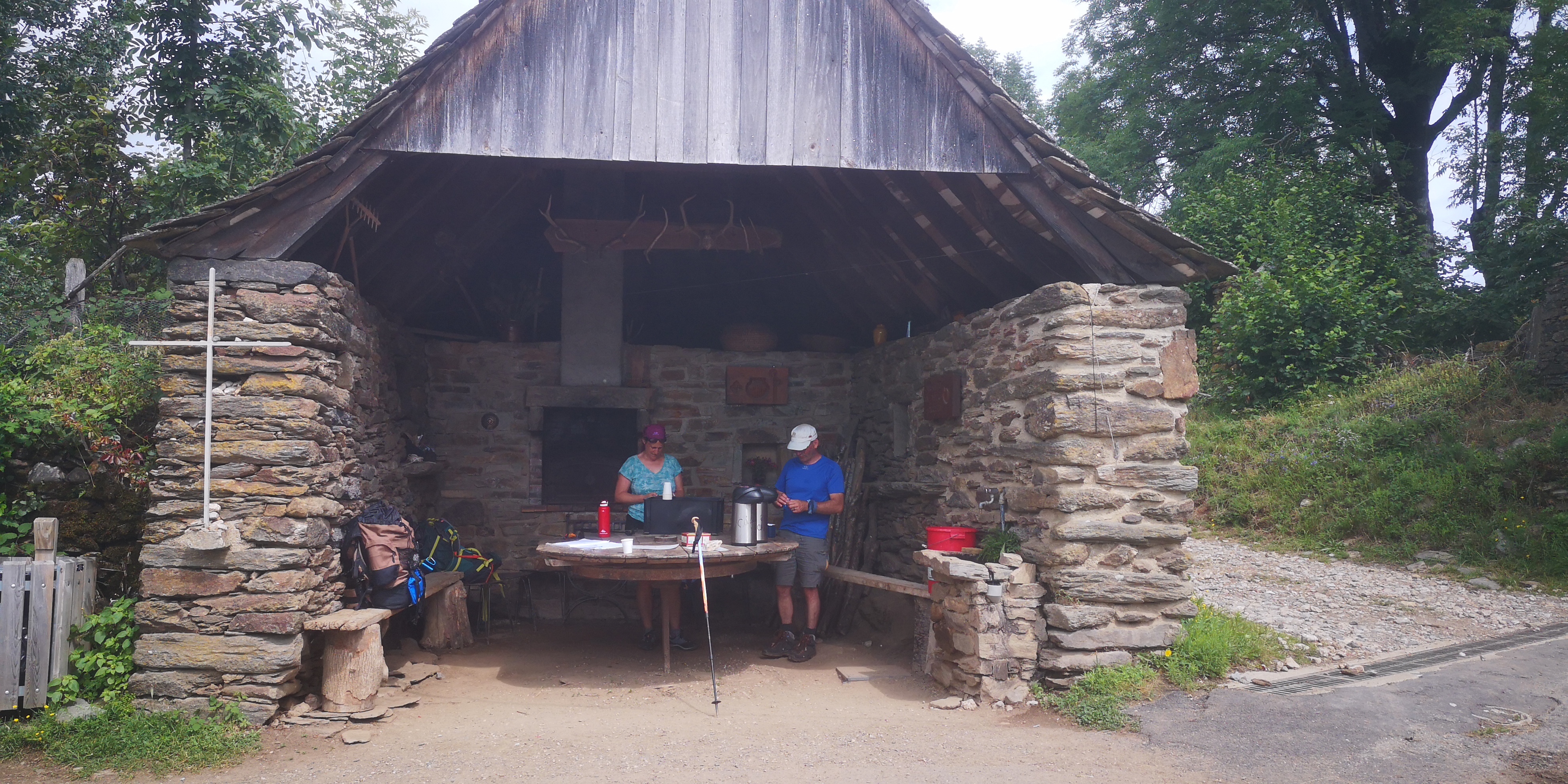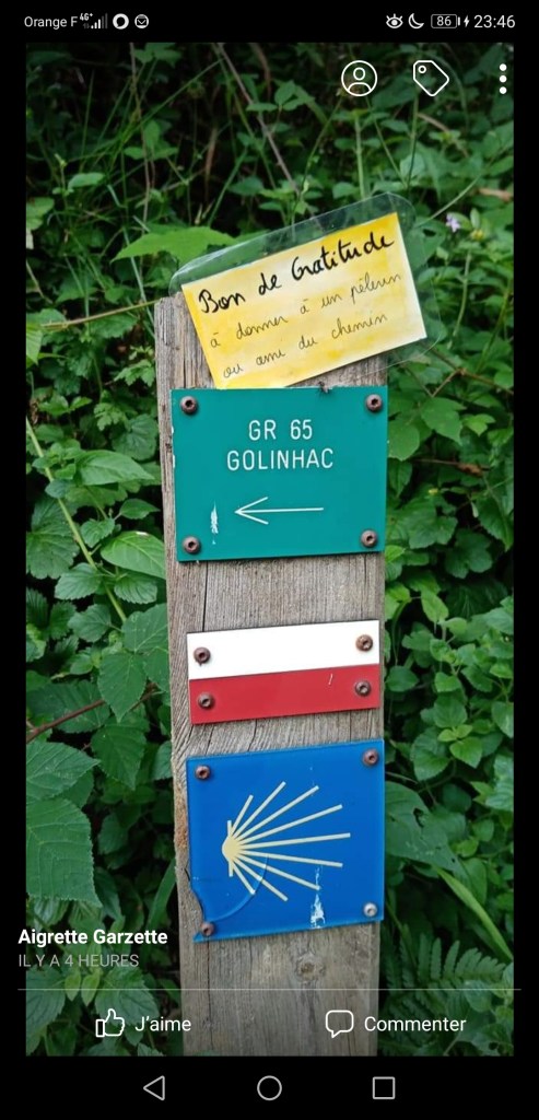Finalement cette étape de transition entre le plateau de l’Aubrac et la vallée du Lot, entre Lozère et L’Aveyron est une belle étape.. Et ce soir ces 17 kms ont permis à chacun de dépasser un peu ses limites.. Et de retrouver de la sérénité pour la suite de notre aventure…