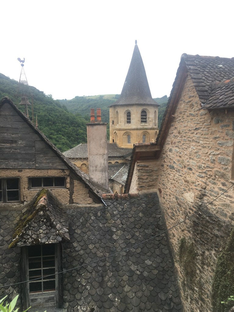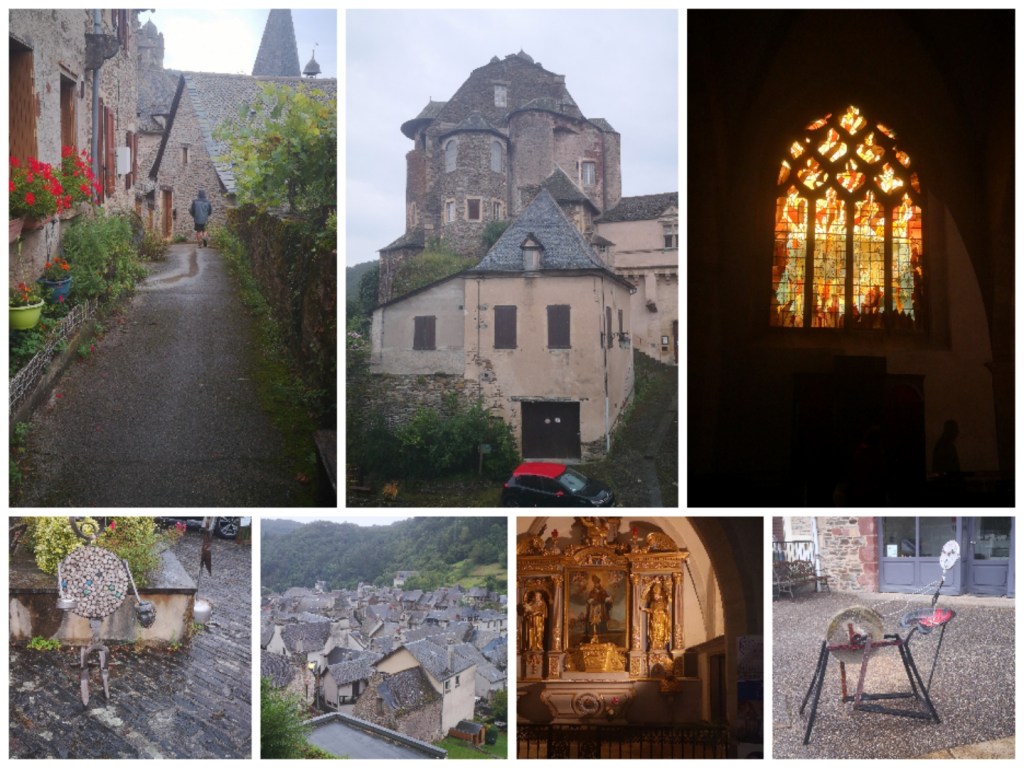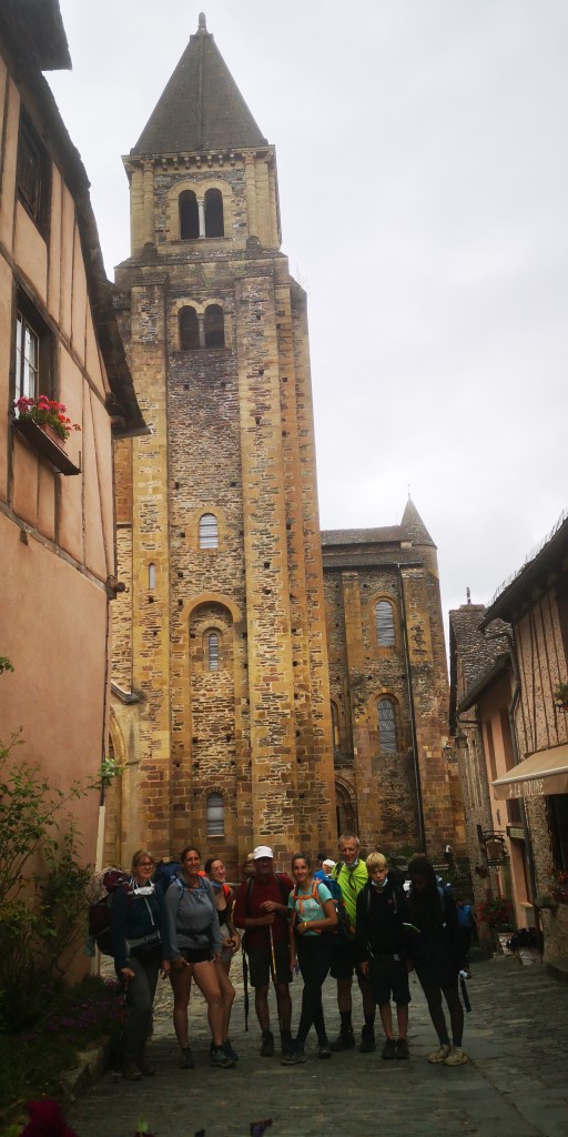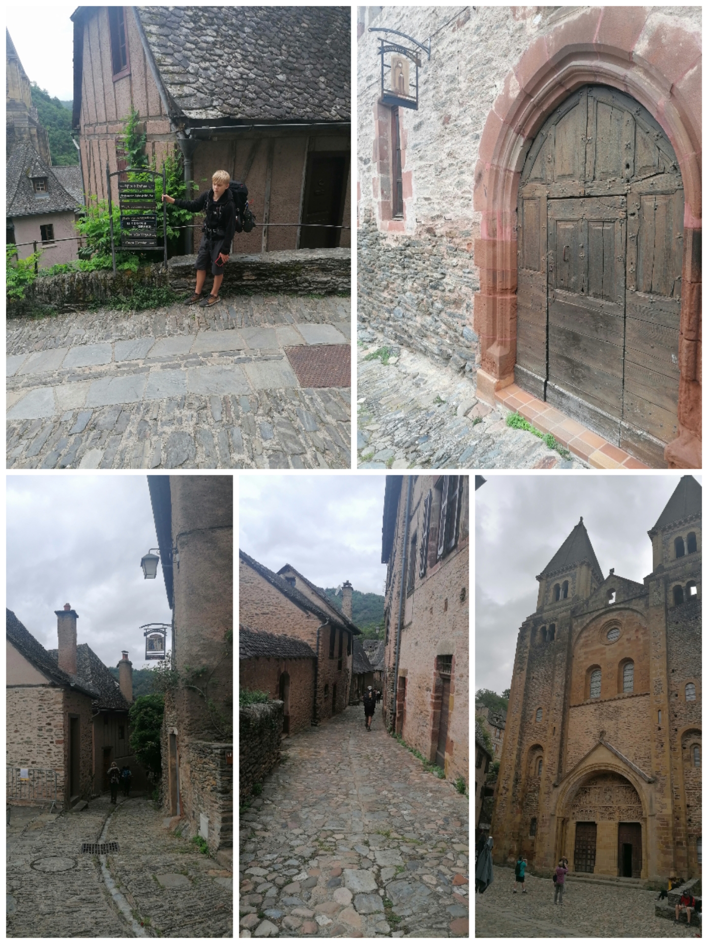 Au bout du chemin, un peu de macadam et là… des bâtisses en pierre, des petites rues étroites, des sacs à dos par dizaines qui se déplacent au grès des pèlerins qui découvrent, comme nous, la citée médiévale, magnifique, passage incontournable du Chemin : Conques.