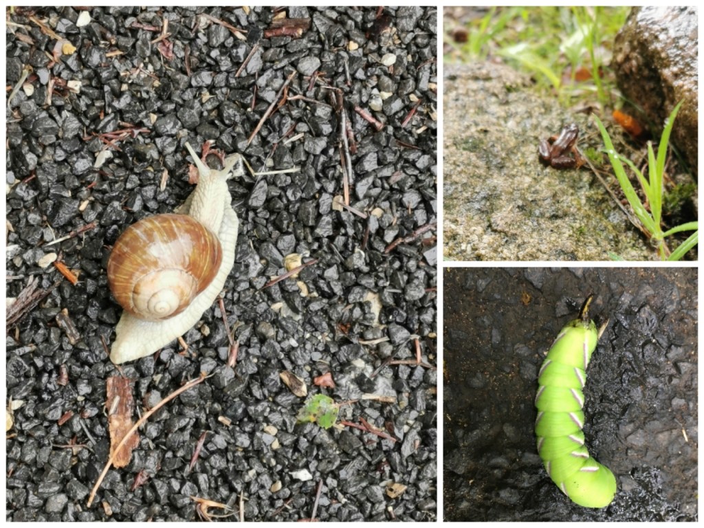 On avale rapidement nos frugales victuailles, parmi mesdemoiselles grenouilles, messires escargots et Mesdames Limaces…