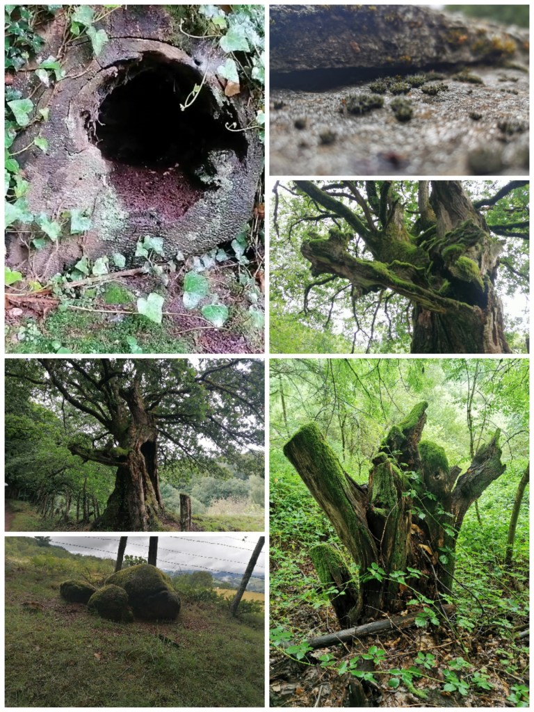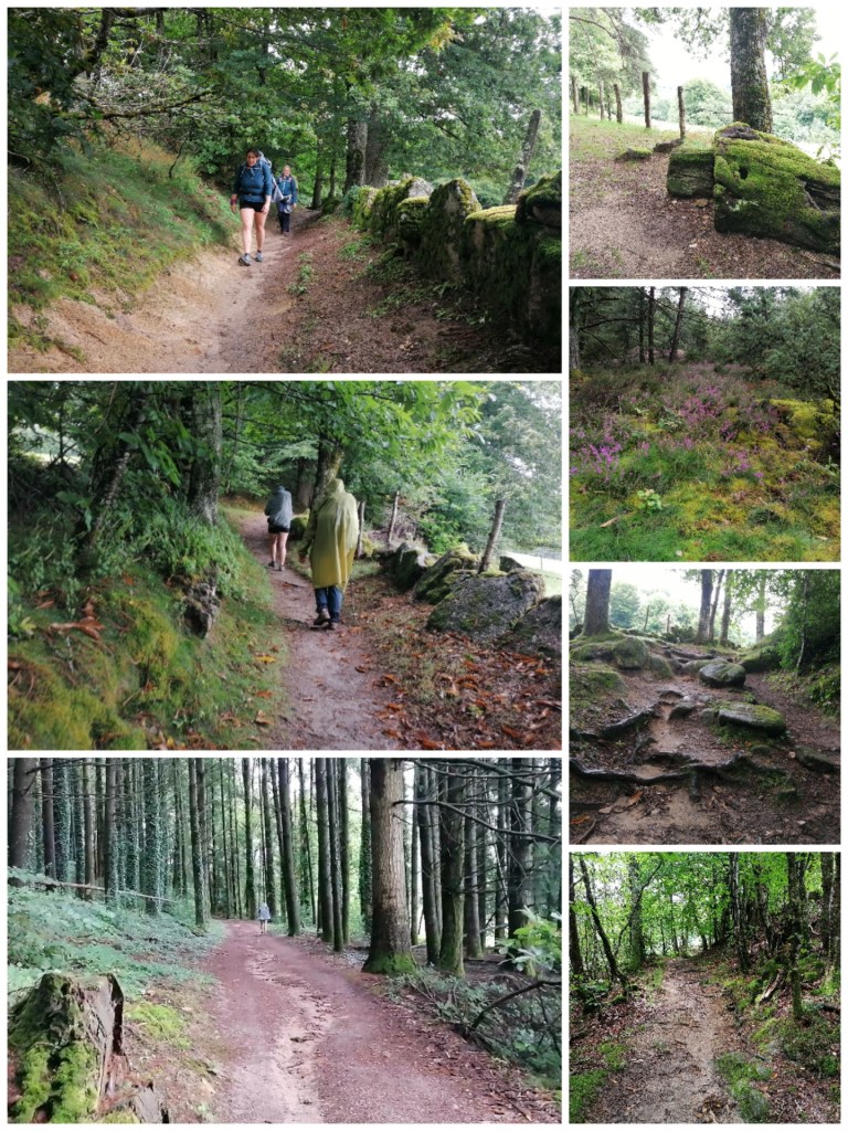 Arbres lichéens, pierres rebondies et façonnées par les éléments, lumières tamisées, raies solaires au travers du feuillage… Nous marchons à pas feutrés, aux aguets d’éventuelles apparitions de Celtes pinturlurés, d’un Druide canonique, de gnomes, d’Enth, lutins ou fées de ce lieu… Un plaisir des sens ! Quelle ambiance !