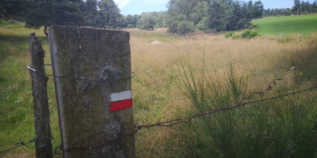 Traversant le pont, nous retrouvons nos bâtonnets blancs et rouges… Tient, pas de petite grimpette au démarrage aujourd’hui 🤔… Pourtant Marjo est avec nous…😜😇